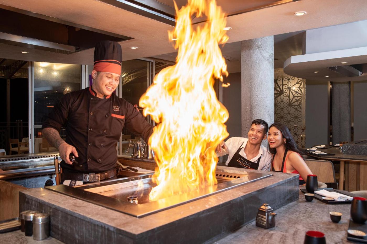 In the morning, guests can enjoy a continental breakfast. La Fourchette restaurant that is open every day for breakfast, lunch and dinner from 06:30 am to 10:30 pm serves Mediterranean cuisine and Izumi that is open for lunch and dinner from 11:00 am to 11:00 pm everyday except on Sundays and public holidays specialises in Japanese food and sushi. Healthy snacks and refreshments can be enjoyed at the pool bar while pre-dinner drinks are available at the modern lounge piano bar.