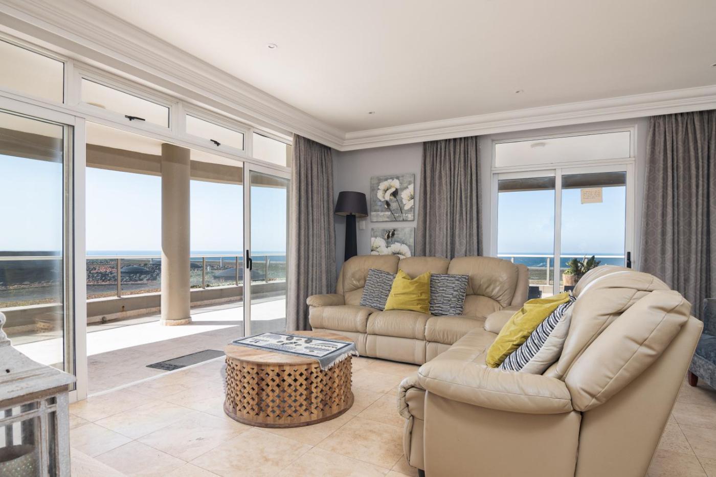 Three-Bedroom Apartment. Boasting a private entrance, this air-conditioned apartment features 1 living room, 3 separate bedrooms and 3 bathrooms with a bath and a shower. Guests will find a stovetop, a refrigerator, a dishwasher and kitchenware in the well-equipped kitchen. The apartment also comes with a barbecue. The spacious apartment features a washing machine, a seating area, a dining area, a flat-screen TV with streaming services, as well as sea views. The unit has 4 beds.