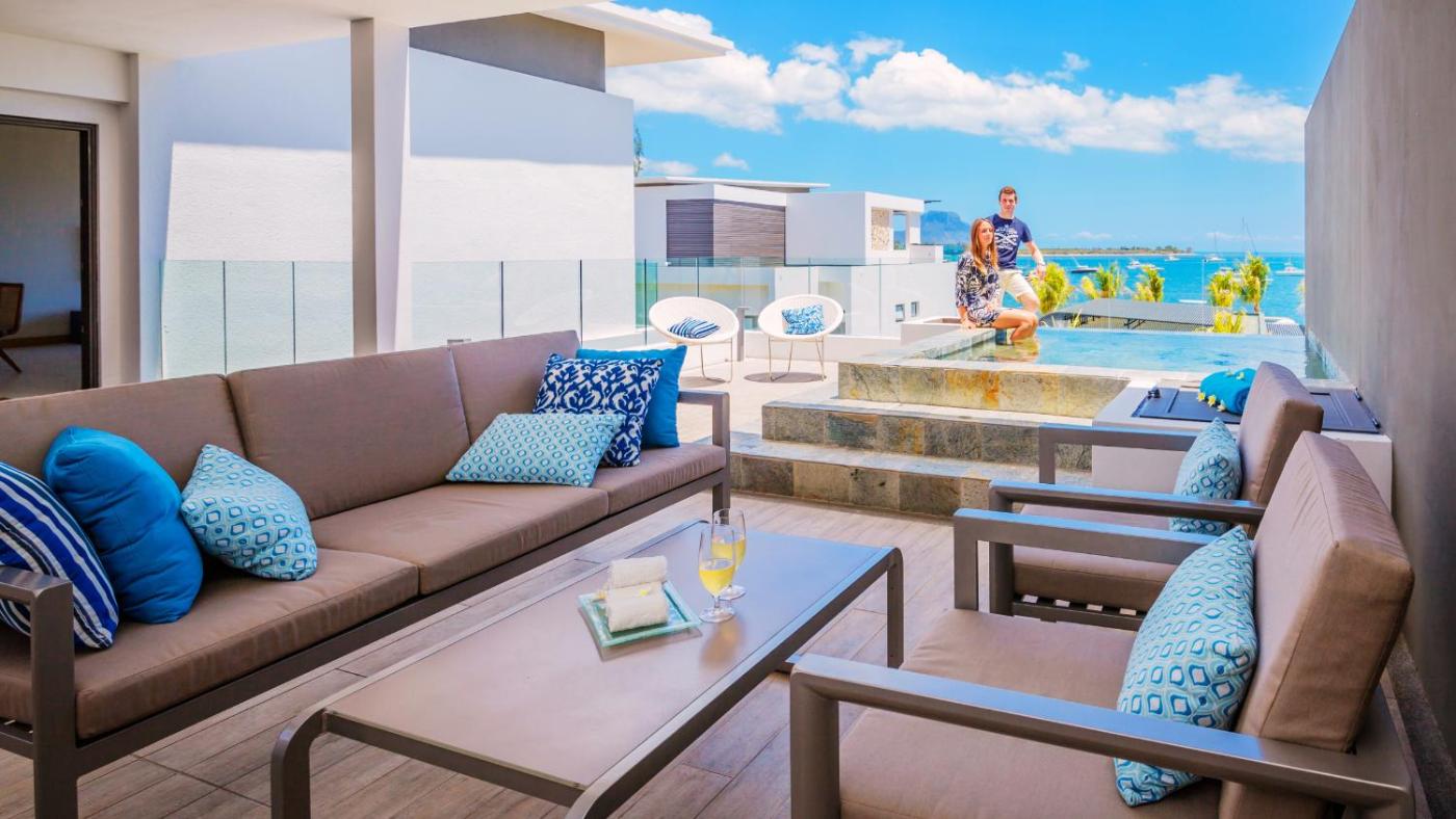 Three-Bedroom Penthouse. This luxurious 3-bedroom apartment is located on the top floor and offers views of the ocean. It has a spacious living area and an open-plan, fully equipped kitchen. The bedrooms areen suite; and the master bedroom has a bathtub. It also features an outdoor dining area and a plunge pool.