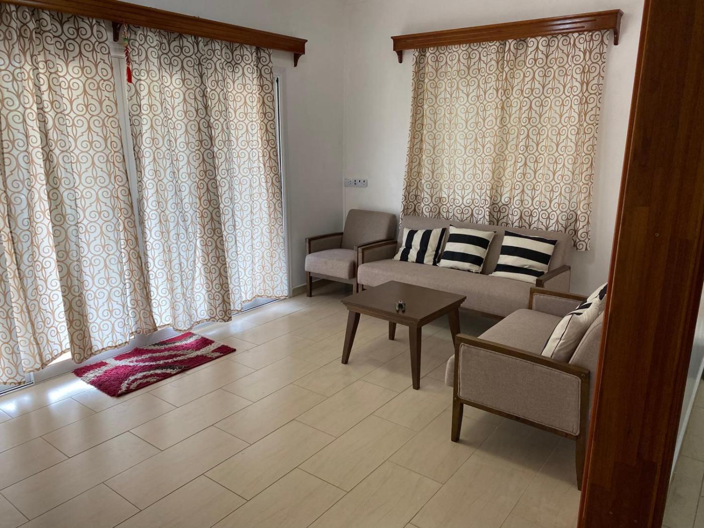Two-Bedroom Apartment. Boasting a private entrance, this spacious apartment also features 2 living rooms, 2 separate bedrooms and 2 bathrooms with a shower. In the fully equipped kitchen, guests will find a refrigerator, an oven, a microwave and a toaster. The air-conditioned apartment features a flat-screen TV, a washing machine, a seating area, a dining area as well as garden views. The unit has 2 beds.