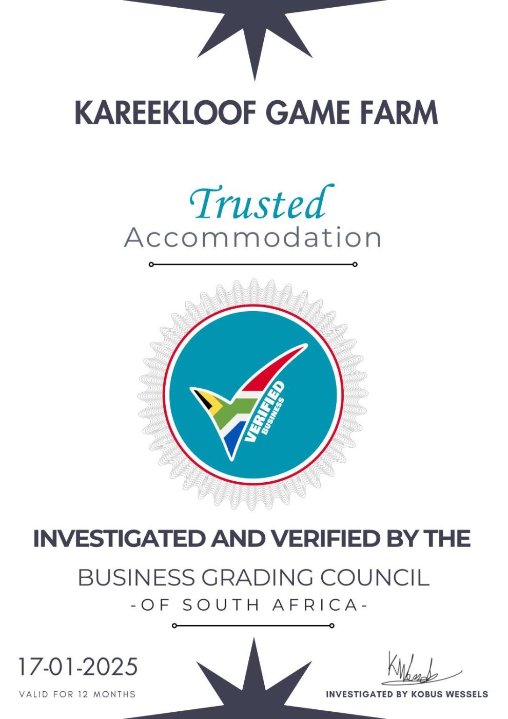 Kareekloof Game Farm is located 45 km from Rustenburg and 100 km from Marupeng the Cradle of Human Kind. Lanseria International Airport can be reached within 1 hour and 45 minutes drive.