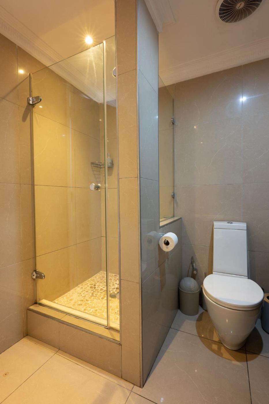 The spacious apartment has 3 bedrooms, a flat-screen TV, a fully equipped kitchen with a dishwasher and an oven, a washing machine, and 3 bathrooms with a bidet.