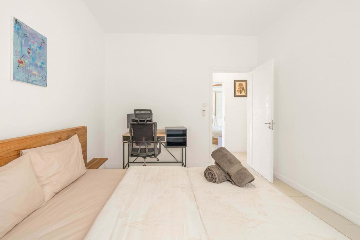 Three-Bedroom Apartment with Ocean View. Featuring a private entrance, this spacious apartment also comprises 3 bedrooms, a seating area and 2 bathrooms with a shower and a hairdryer. In the fully equipped kitchen, guests will find a stovetop, a refrigerator, a dishwasher and kitchenware. The air-conditioned apartment provides a flat-screen TV, a washing machine, a coffee machine, a dining area as well as sea views. The unit offers 3 beds.