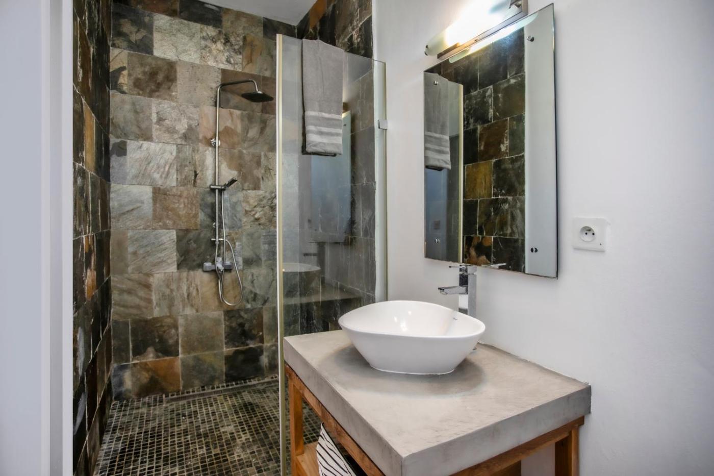 The air-conditioned villa is composed of 2 separate bedrooms, a fully equipped kitchen, and 3 bathrooms. A flat-screen TV is available.