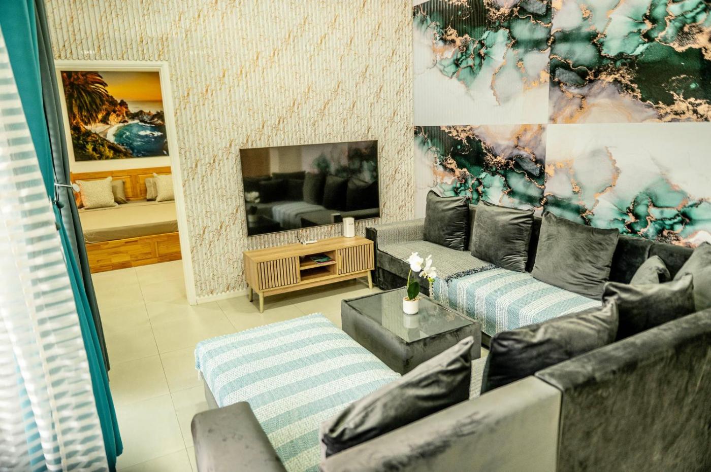 Three-Bedroom Villa. This villa features a pool with a view and a hot tub. Guests will find a refrigerator, a dishwasher, kitchenware and an oven in the kitchen. The villa also features a barbecue. The air-conditioned villa offers a flat-screen TV, a washing machine, a private entrance, a coffee machine as well as garden views. The unit has 1 bed.