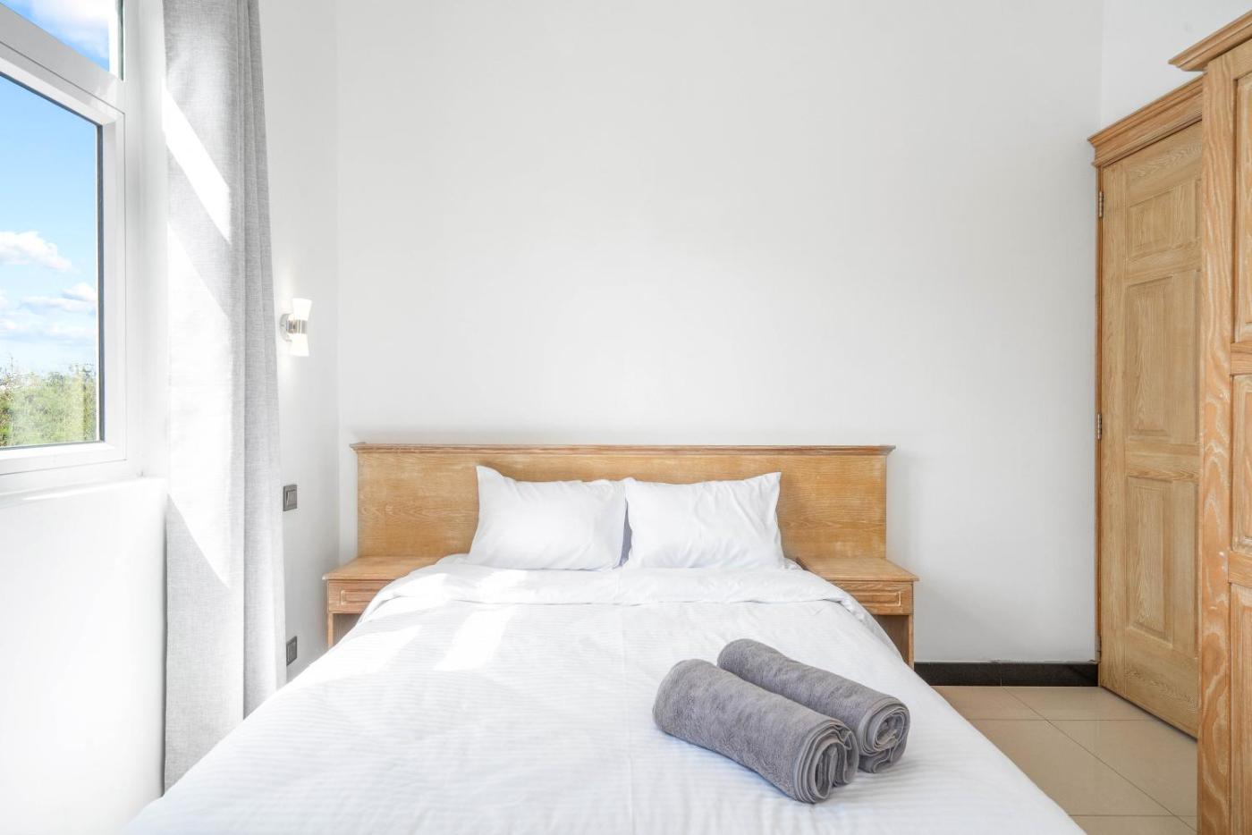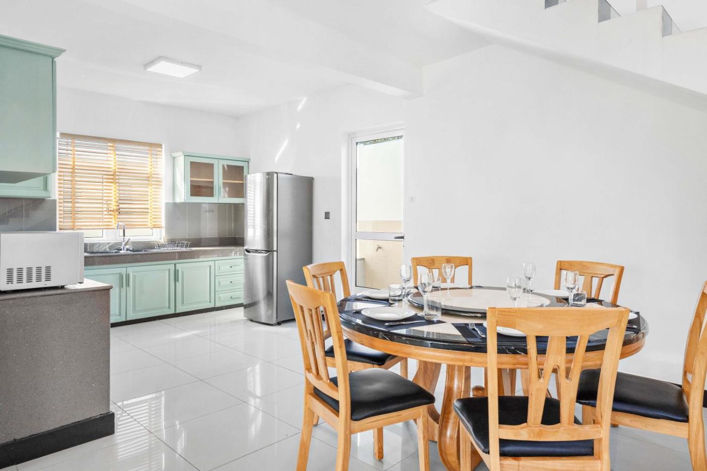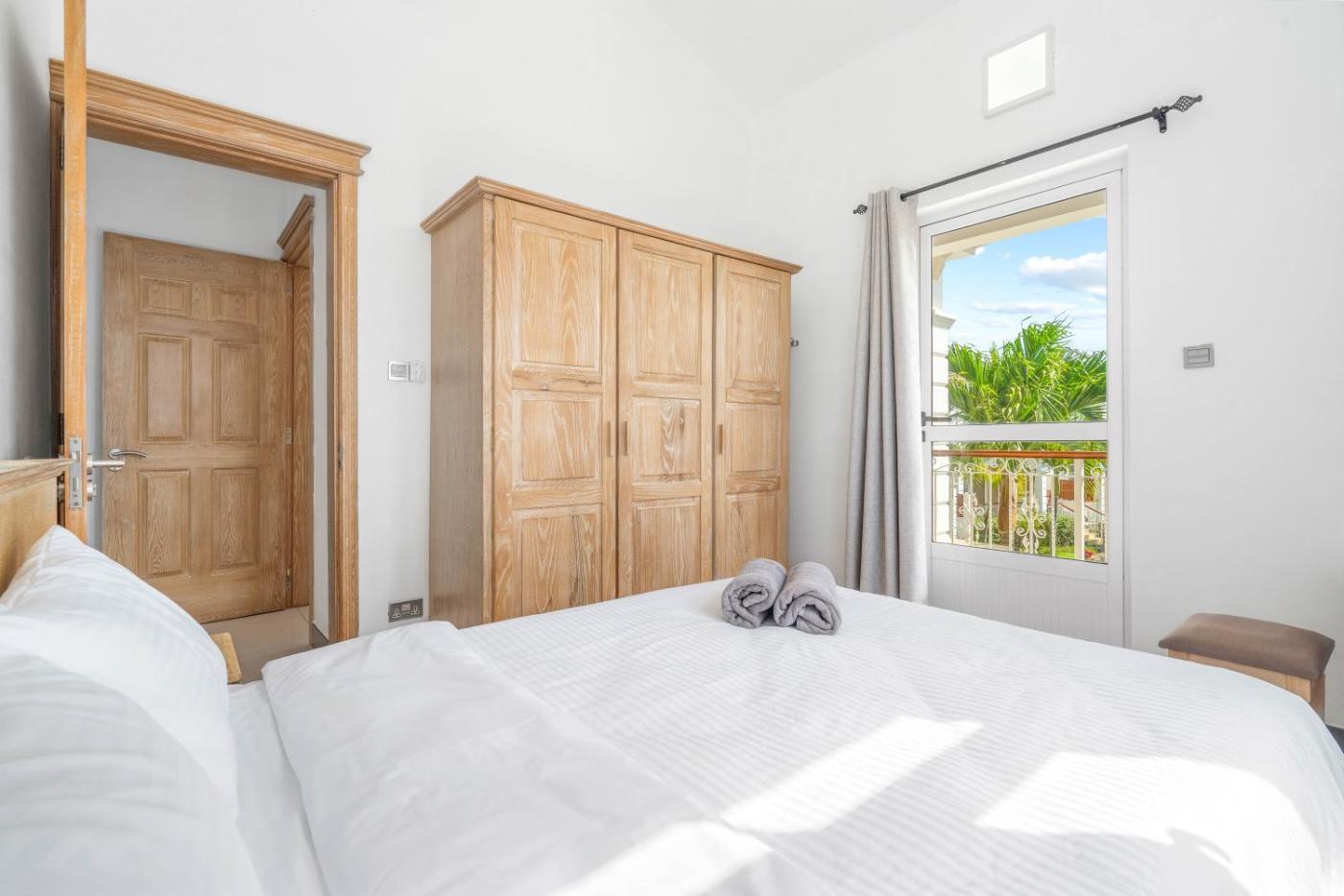 Three-Bedroom Villa. Boasting a private entrance, this air-conditioned villa comes with 3 bedrooms and 3 bathrooms with a shower. Guests can make meals in the kitchen that features a stovetop, a refrigerator, kitchenware and an oven. Featuring a terrace with garden views, this villa also features a washing machine and a flat-screen TV. The unit has 3 beds.