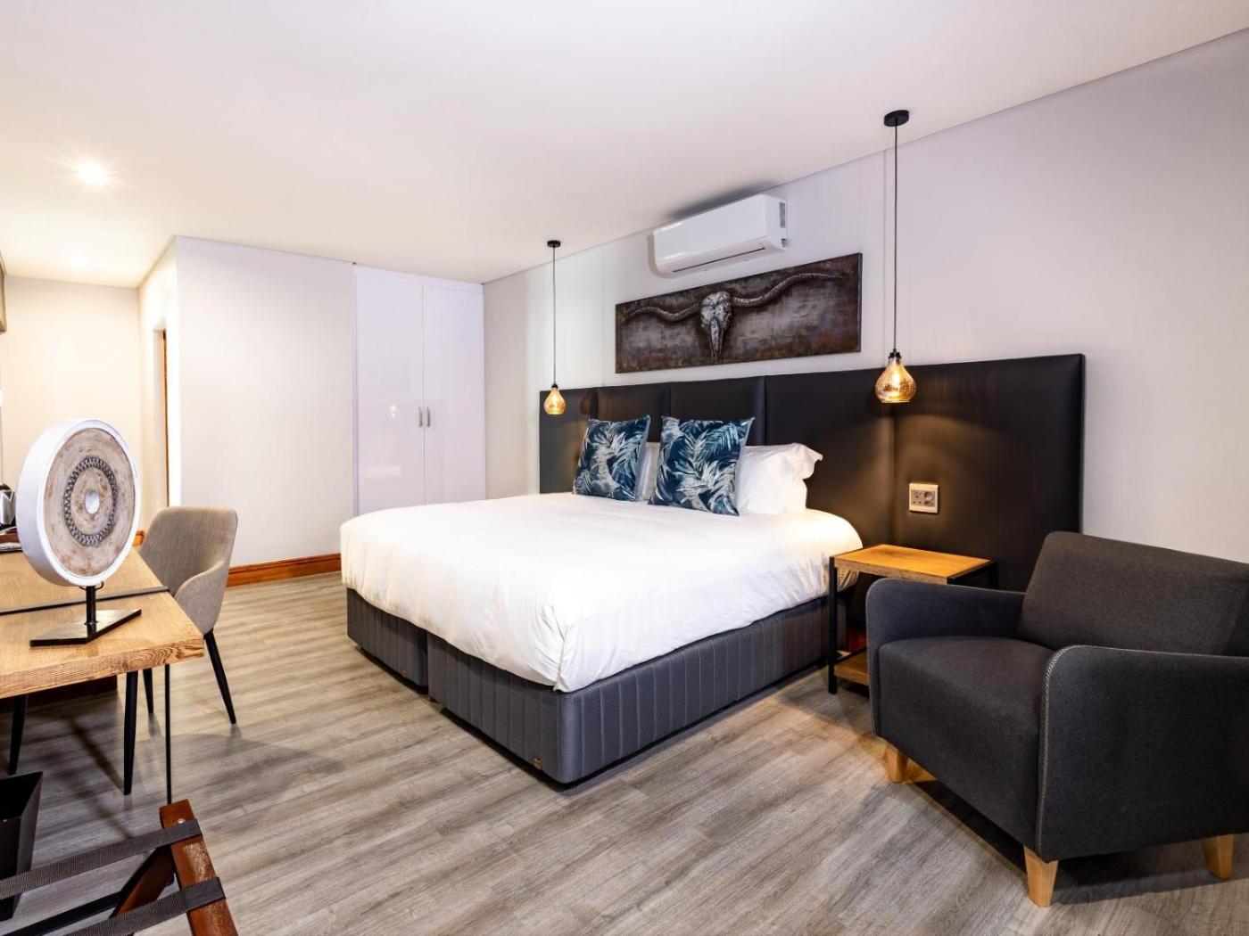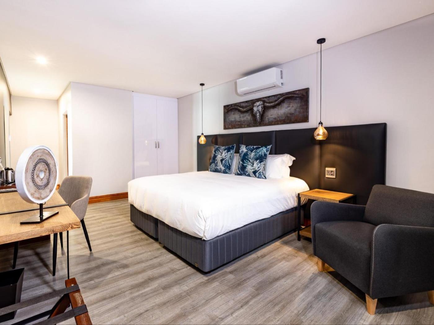 Deluxe King Room. The spacious double room provides air conditioning, a tea and coffee maker, a seating area, as well as a TV with satellite channels. ;
