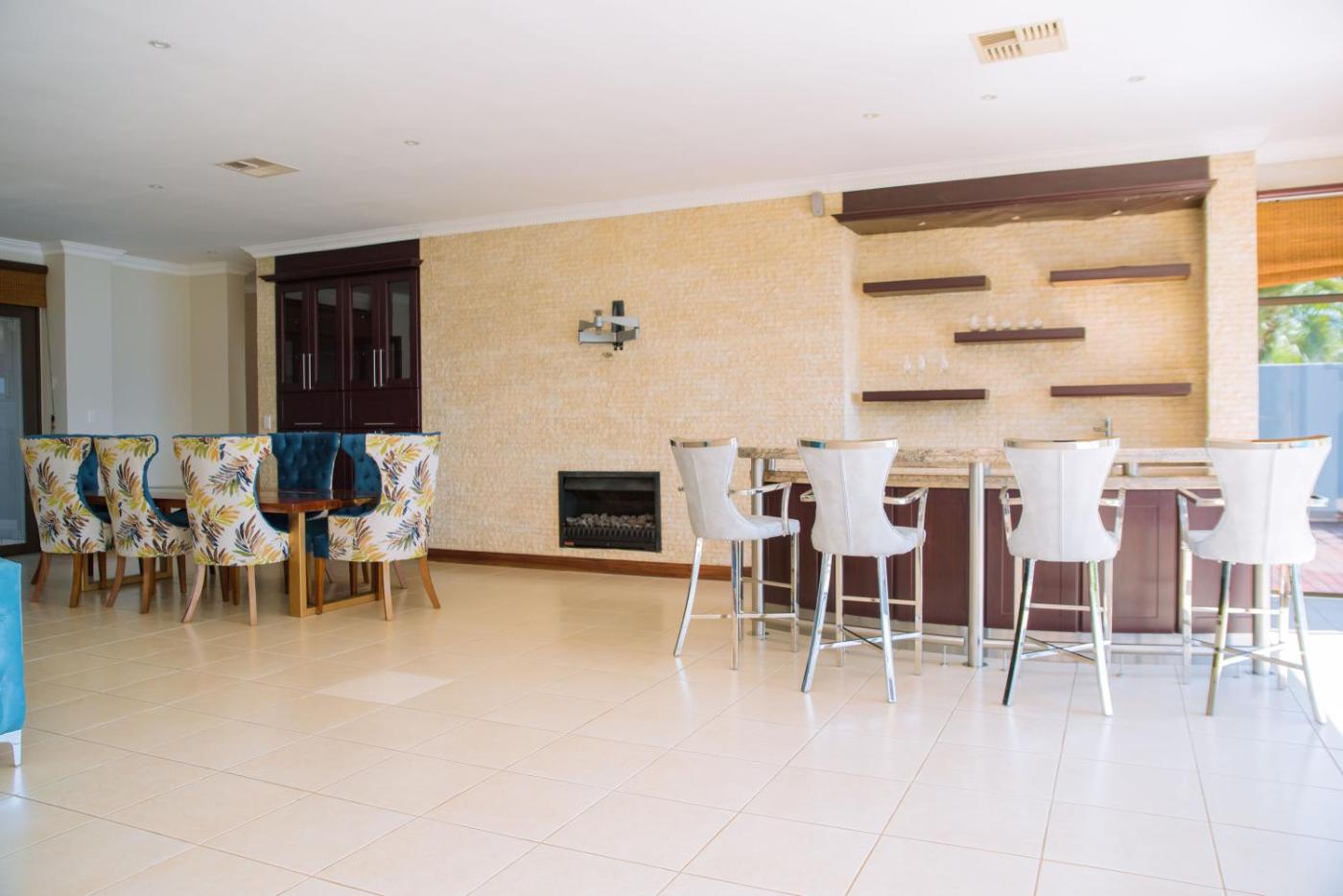 Featuring air-conditioned accommodation with a private pool, lake view and a patio, Dam View HOUSE isin Hartbeespoort. The property has pool and garden views, and is 24 km from Eagle Canyon Country Club. The property is non-smoking and is located 40 km from Cradle of Humankind.
