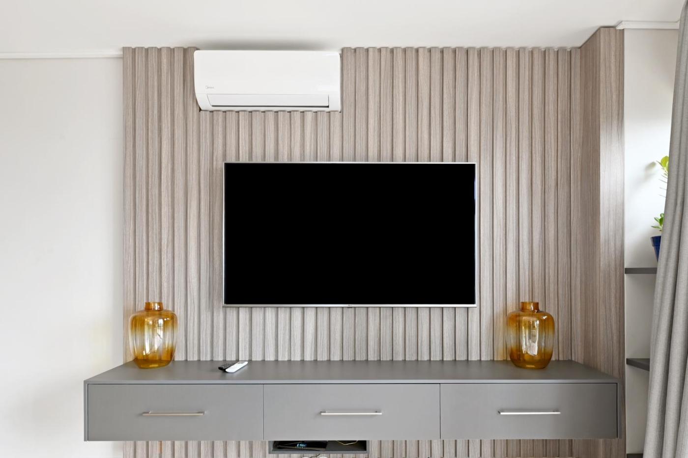 Two-Bedroom Apartment. Featuring a private entrance, this air-conditioned apartment is comprised of 2 bedrooms, 2 bathrooms and a kitchen. Guests can make meals in the kitchen that is fitted with a stovetop, a refrigerator, a dishwasher and an oven. The spacious apartment offers a washing machine, a minibar, a tea and coffee maker, tumble dryer and a flat-screen TV. The unit offers 2 beds.