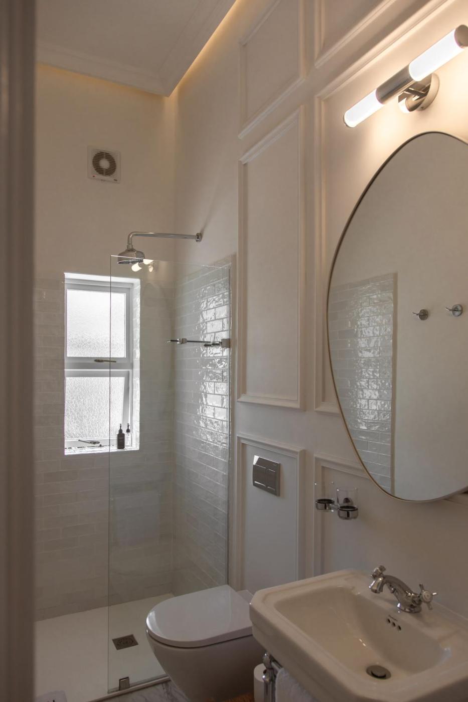 All modern-furnished rooms are decorated with white linen on the beds, a ceiling fan and windows with American shutters. Each room has a TV, a desk and an electric kettle. Some offer views of the garden or Table Mountain.